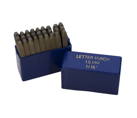 Punches are 2-3/8″ in length with a character height of 1/16″ (1.5mm).