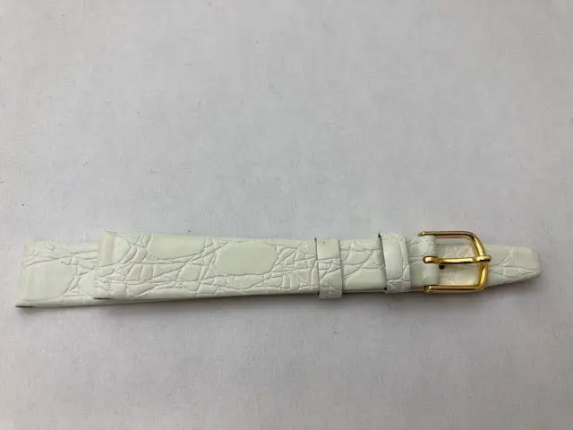 13mm White Croco Grain Flat Leather Strap. In bulk, no packaging.