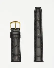 14mm Alligator Grain Black Leather Strap. Medium pad, stitched.