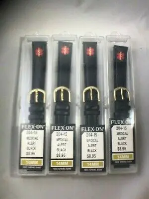 14mm Black Leather Flex-On Medical Alert Watch Band – Closeout!!