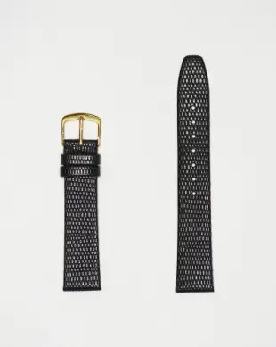 Lizard grain black leather strap with buckle. Long