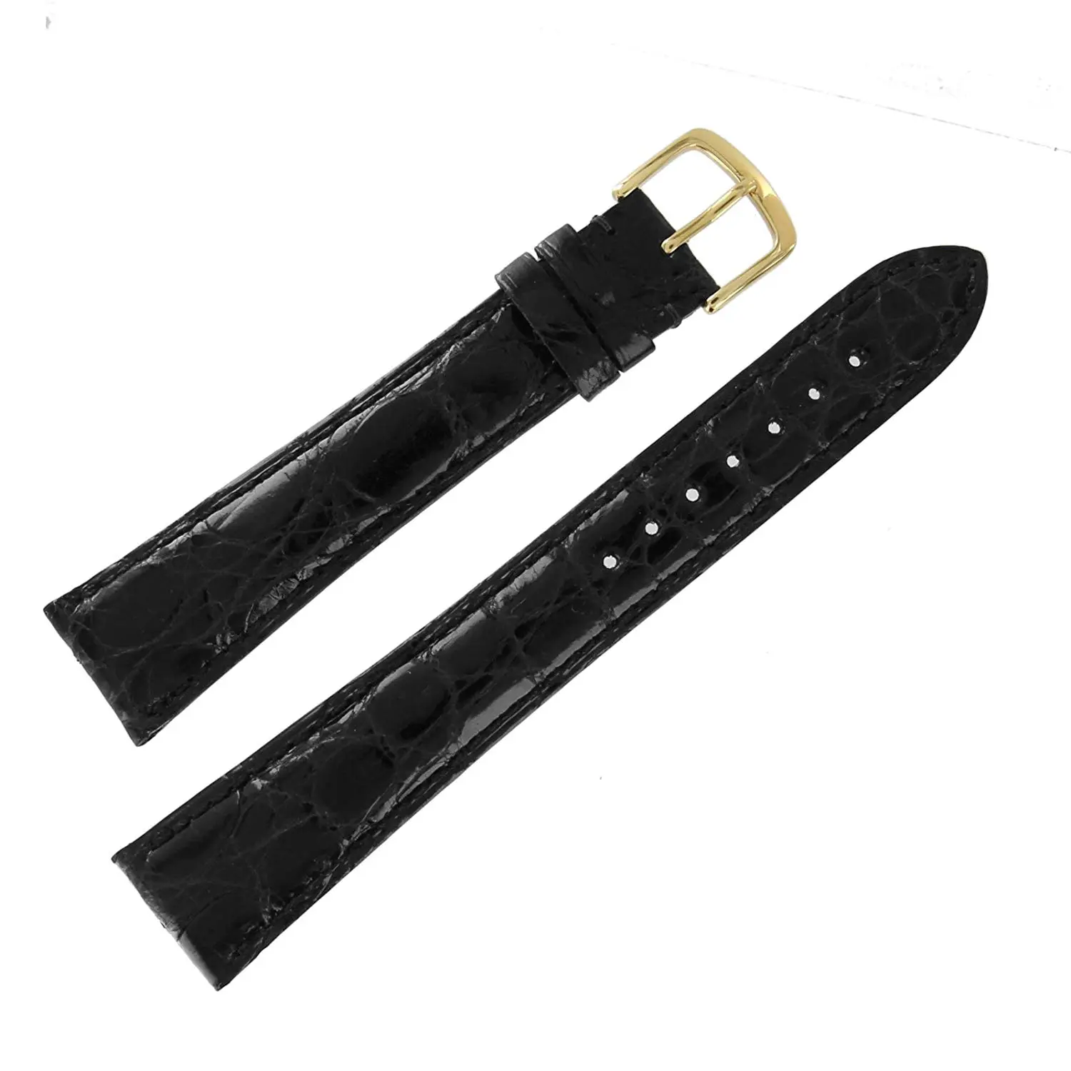 Hadley Roma 18mm Black Genuine Crocodile Stitched Leather Band