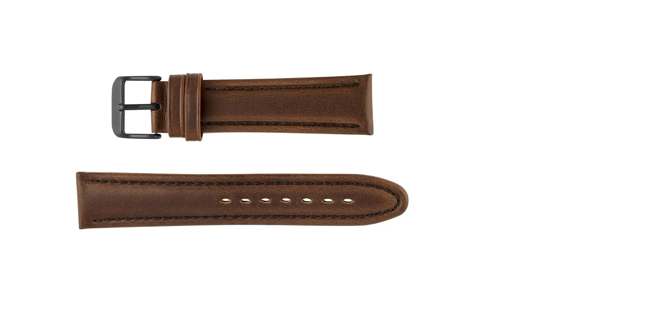 20mm Dark Brown Stitched Leather Watch Band with Black Buckle