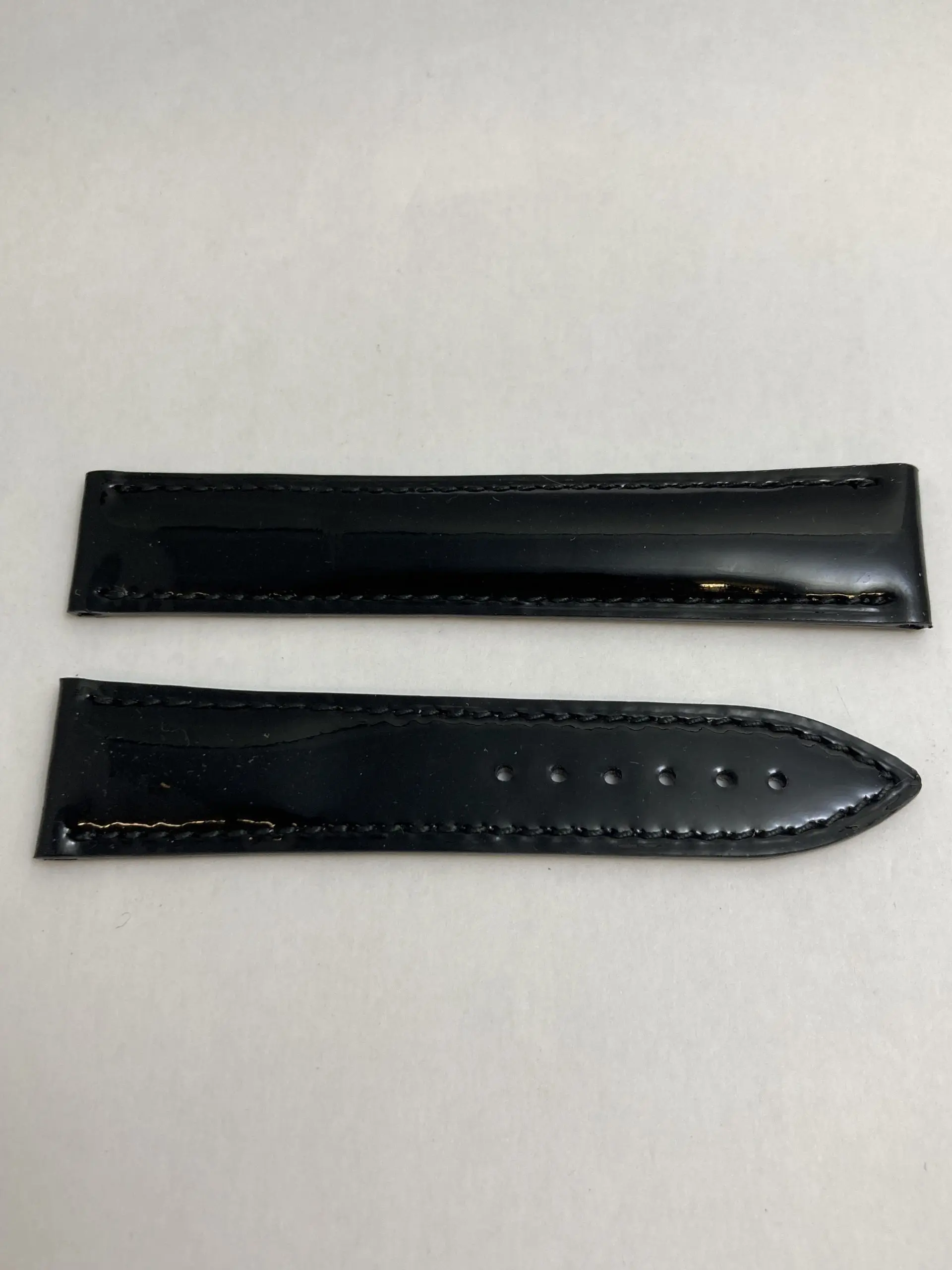 18mm Genuine Omega 98000048 Black Patent Leather Deployment Strap