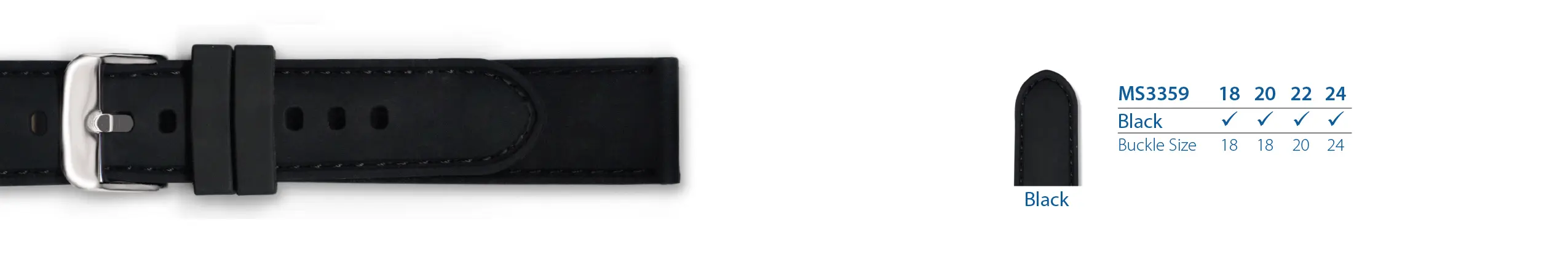 18mm Hadley Roma Black Stitched Silicone Watch Strap
