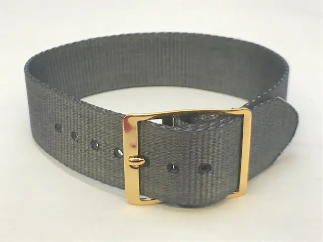 18mm Nylon One Piece Watch Strap Gray w/Gold Buckle -Closeout!!