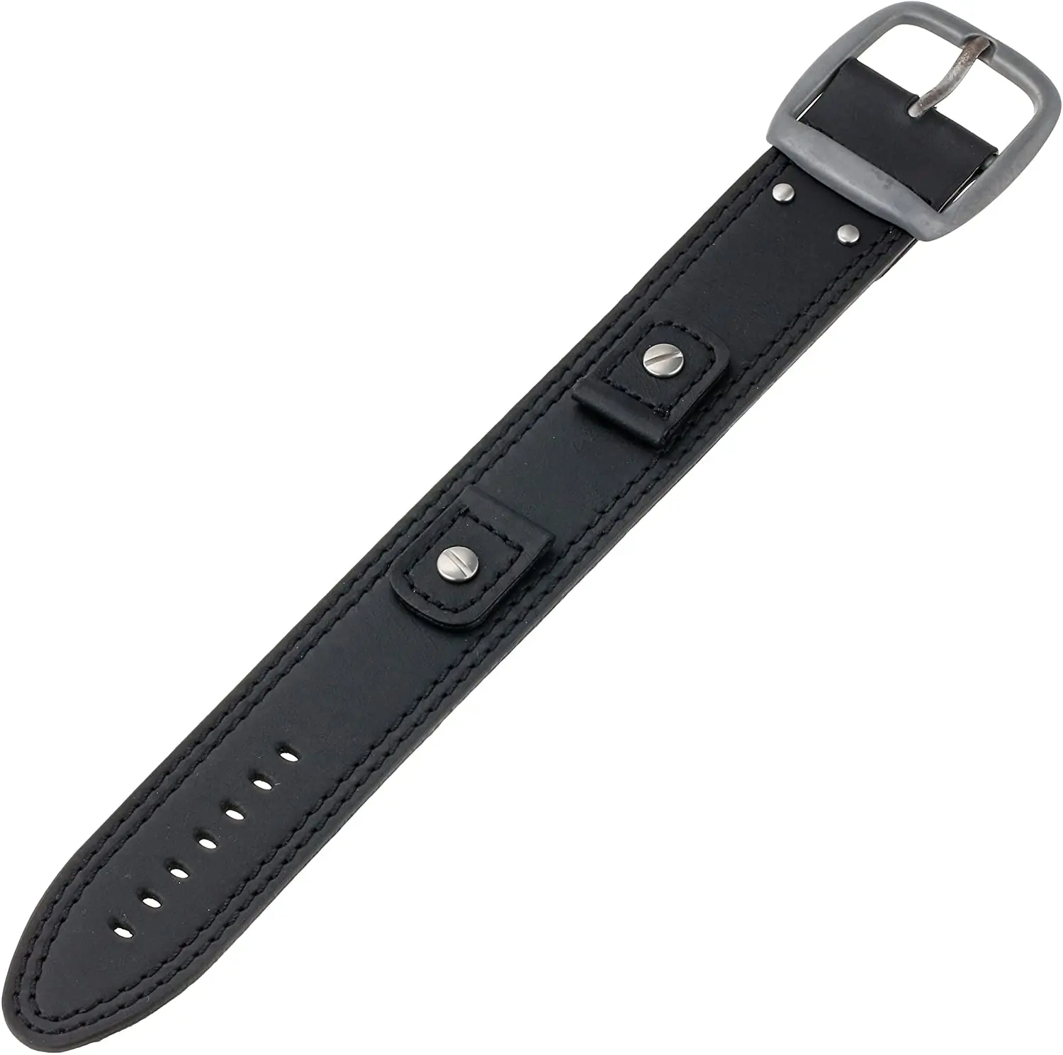Black Cuff Leather Retro Watch Strap with Silver Buckle. Fits Both 18mm and 20mm Lugs. 34mm wide on wrist.