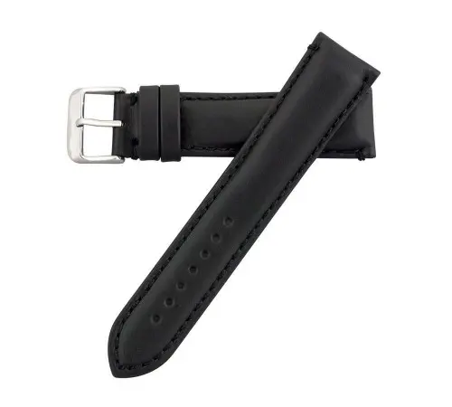 Classic oilskin black leather strap with buckle. Padded and stitched. Short.