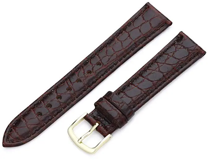 Croco grain brown leather strap with buckle