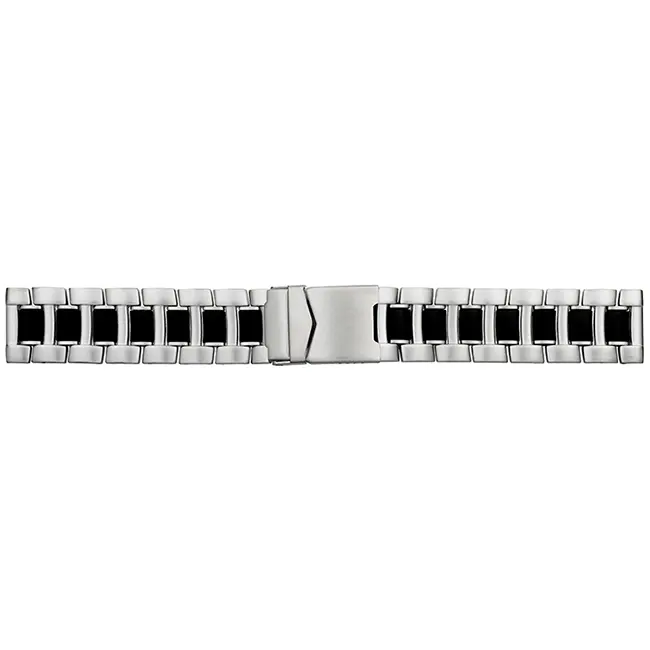 24mm Stainless Steel Watch Bracelet, Black Rubber Accent. Straight Ends