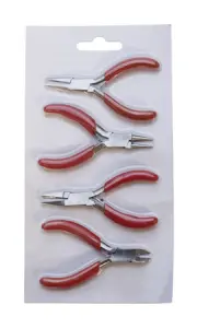 Especially handy for bead stringers on the go! Cute to look at but extremely functional. Working head is constructed from the same size blanks as larger pliers. Four piece handy “Go Anywhere” set includes chain flat round and sidecutter. Length 3.