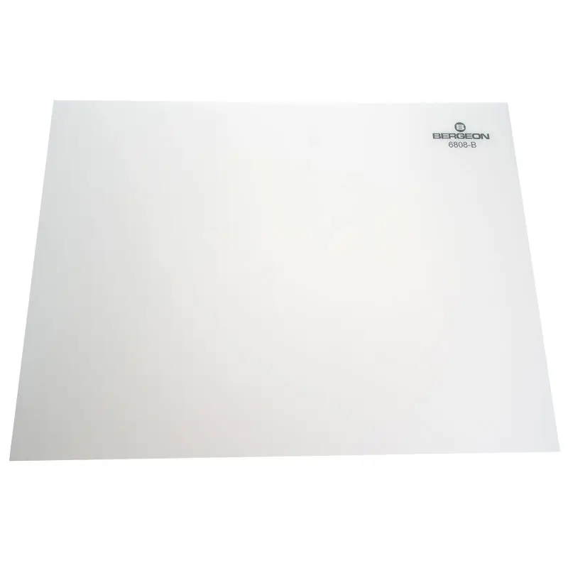 Bergeon plastic bench mat 250mm x 350mm x 0.5mm. Self adhesive sticks to any work bench. Mat is antistatic. Works well in watchmaking and jewelry applications.
