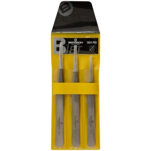 Bergeon 7024-P03 Anti-magnetic Tweezers 3 Piece Set quantity