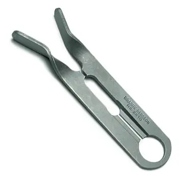V-slot slips between hub of staff and seat of roller. Lifts roller from balance seat. Extra fine jaws permit use on small and standard sizes. Swiss made.