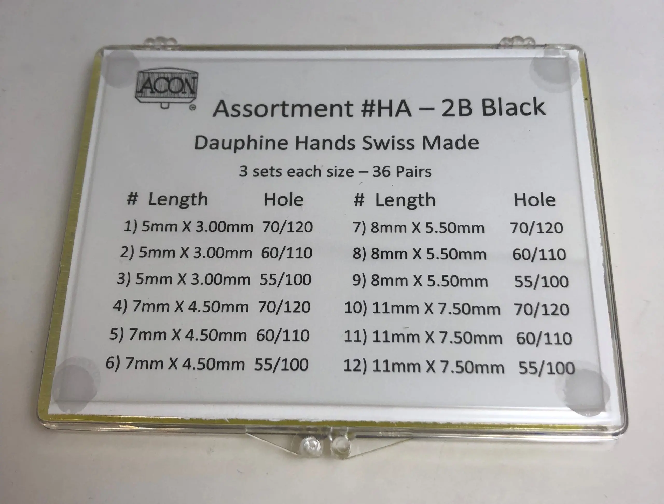 Black Dauphine Hand Assortment, 36 pairs. 12 sizes – 3 pieces each size. Fits ladies to men’s sizes.