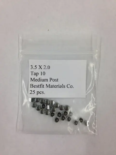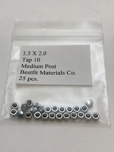 3.5 x 2.0 tap 10, medium post, Sport top, Stainless Steel, 25 pieces