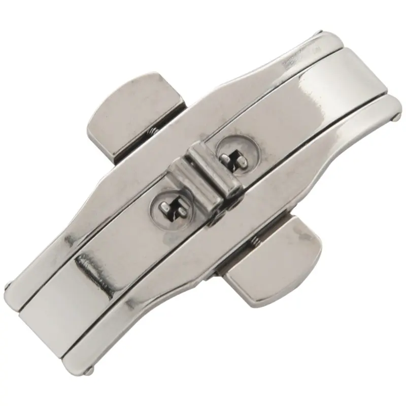 Stainless steel clasp 6.0mm width at band connection, 40.0mm length, 12.0mm width.
