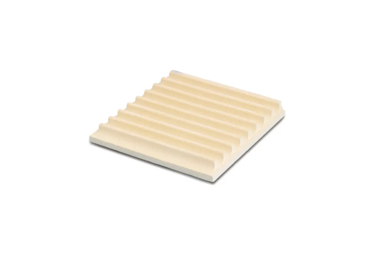 Non-asbestos. Flat on one side, with grooves on the other, for holding shanks, chains, etc. Withstands temperatures up to 2000F (1093C). Measures 71/2″ x 71/4″ x 7/8″.
