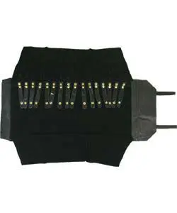 Economical Chain Roll, Black Velvet & Vinyl, 16 Snaps. Dimensions 22″ x 11″. Velcro closure.