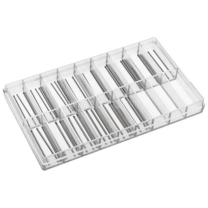 Link Pins for Watch Bands Assortment – 60 pieces Straight – Stainless Steel. Assortment of solid, straight pins with a flat pressed end. The friction caused by this deformed end secures the links. Length 27mm. 10 sizes, 6 pieces each size. Thickness 0.8-1.2mm