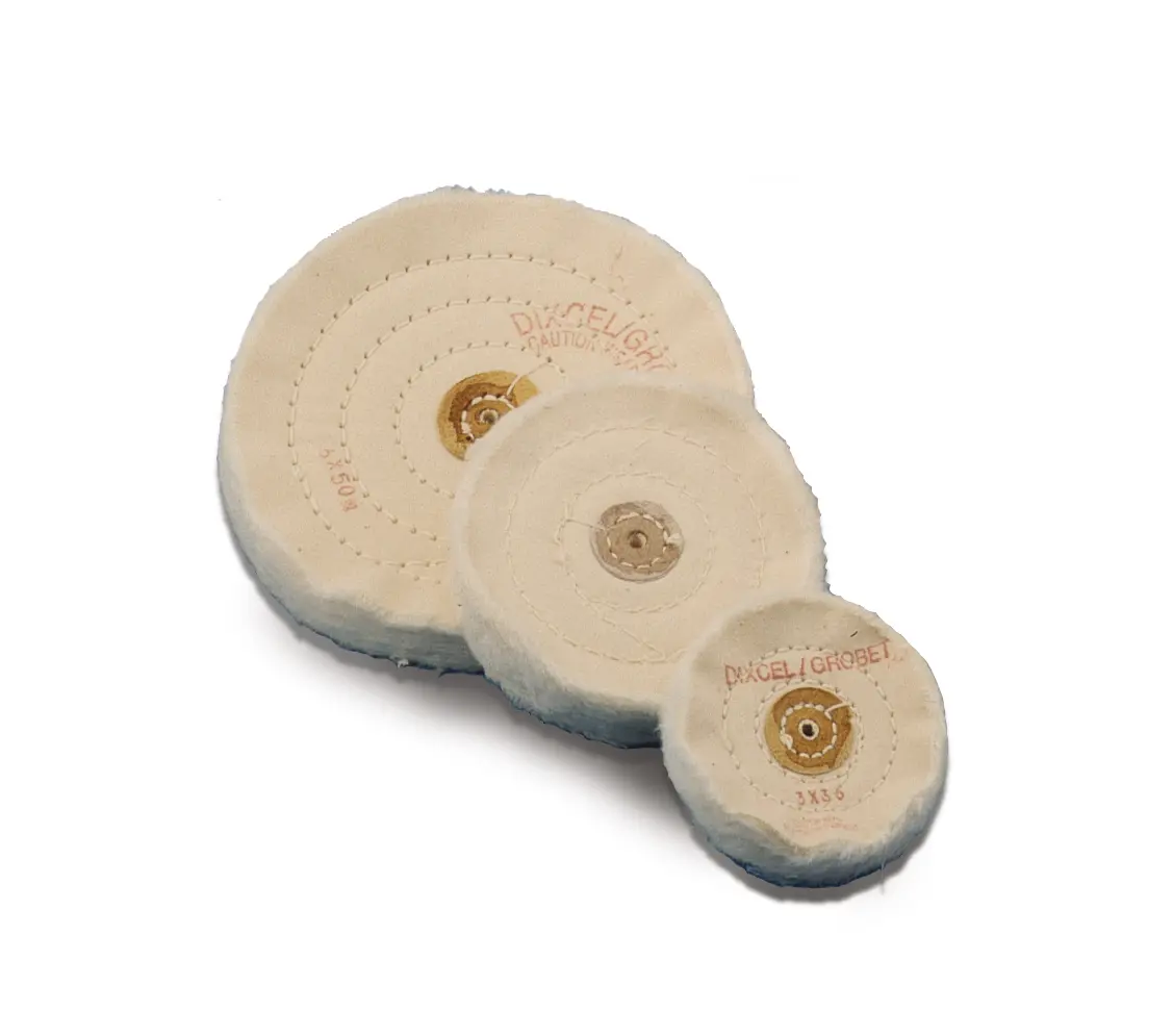 Superior quality, soft textured buffs, stitched with leather centers, are perfect for use with rouge to produce a high finish.