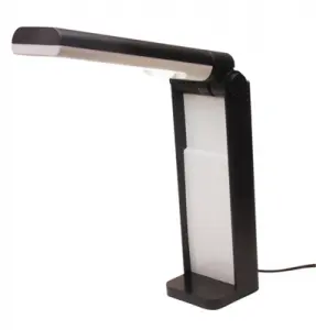 The perfect lamp for a multitude of jobs. A reasonably priced portable folding light with a 13 watt daylight bulb. Made of high impact black plastic, with a pure white reflective surface, this light features an adjustment screw to control arm tension. 5300 to 5500K (Kelvin temp). This is a must for every workspace or bench.