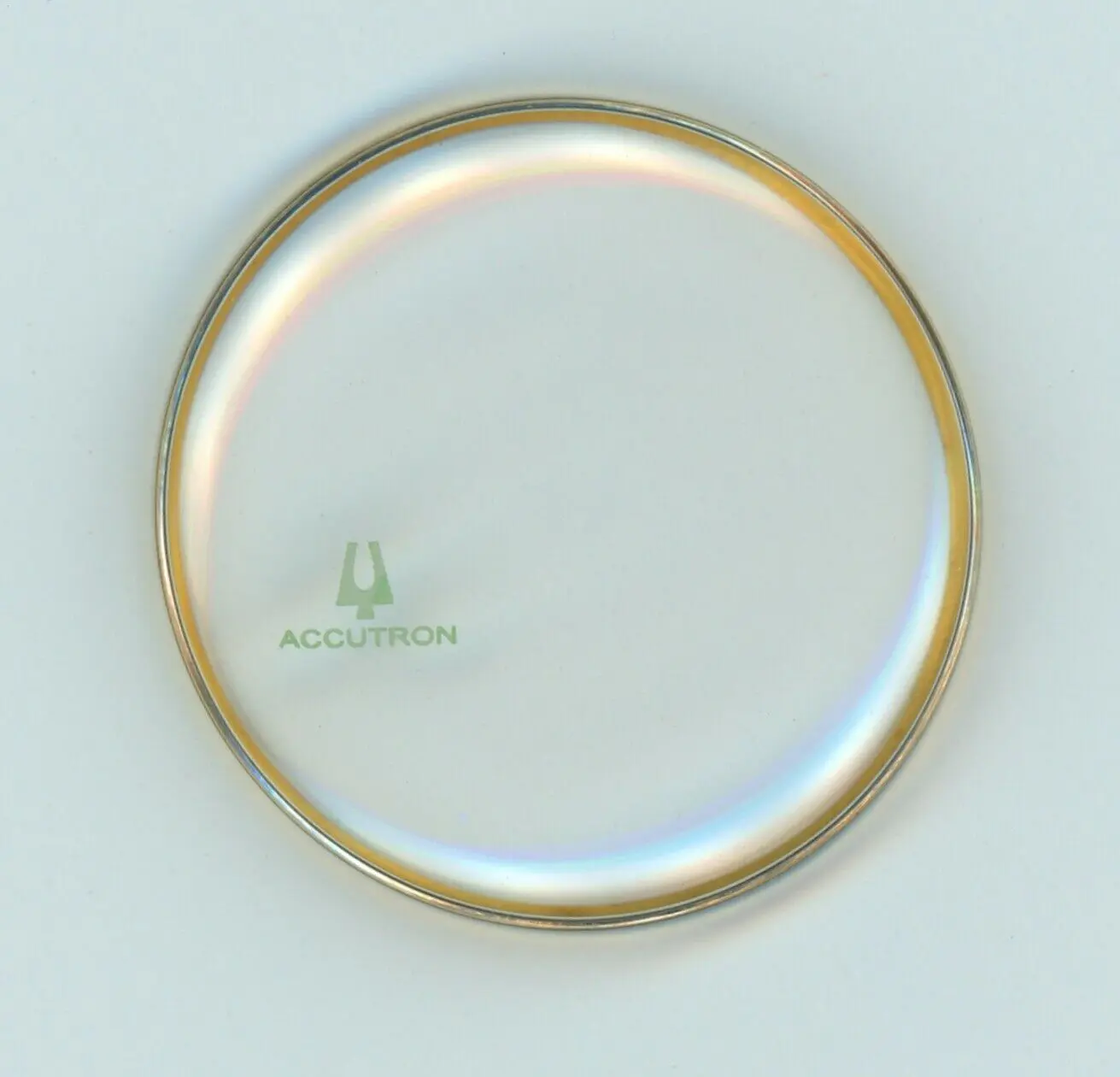 Generic Bulova Accutron Spaceview Crystal 1271AYS. Yellow tension ring plastic crystal. 31.1mm