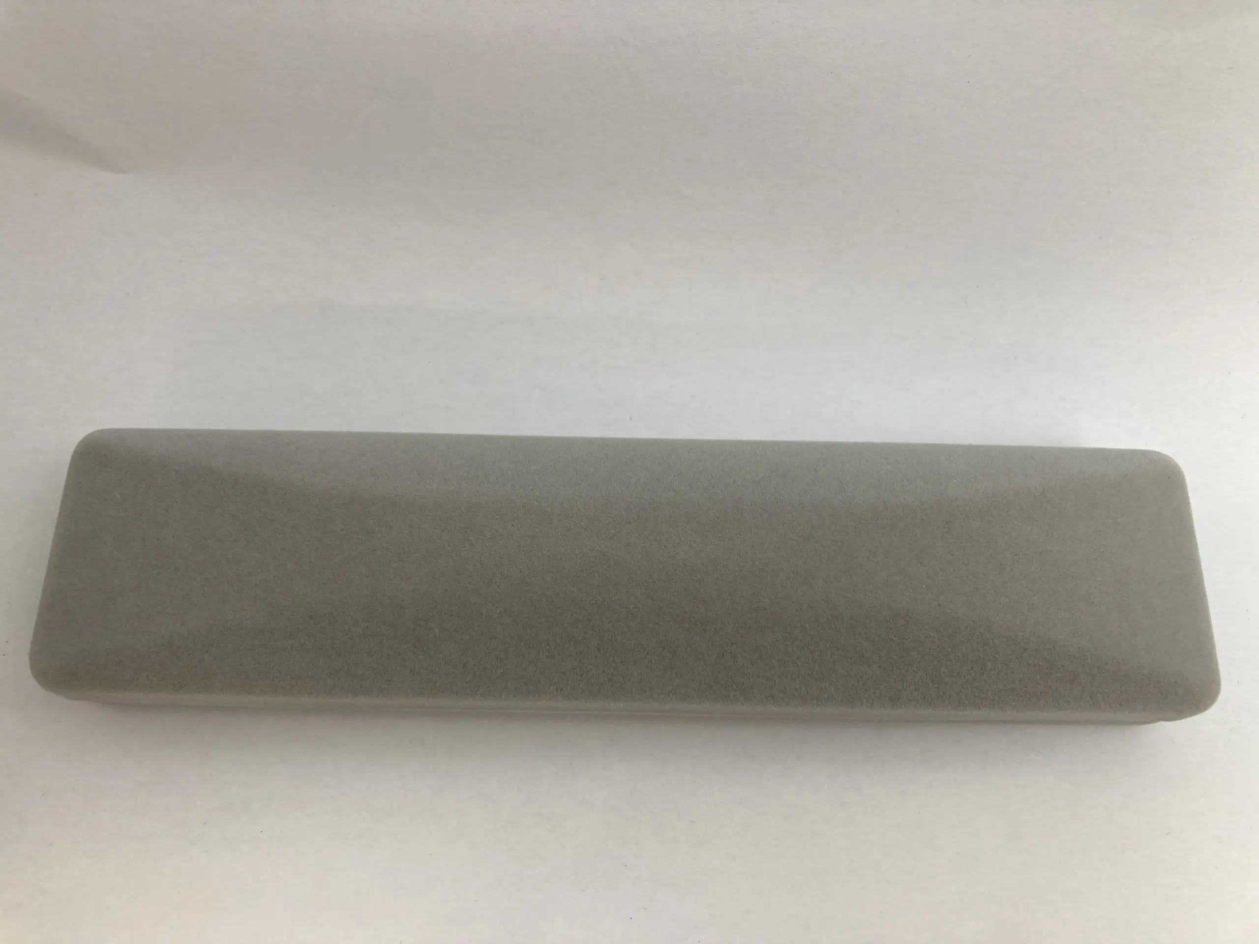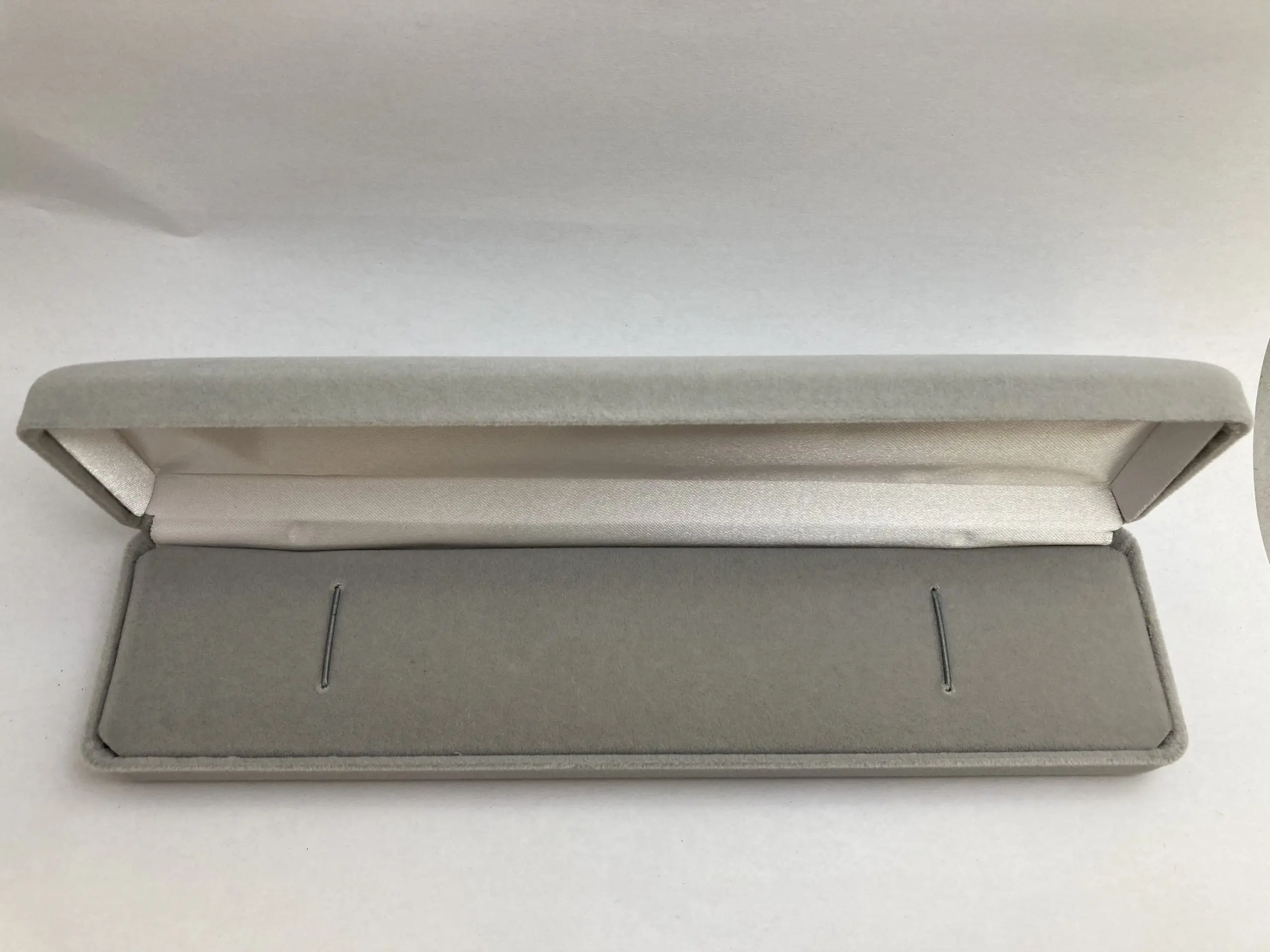 Gray velvet bracelet box with hinge. White satin lining. Sold by the dozen. Size 8x2x1″
