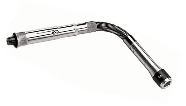Duplex springs are subject to breakage and are NOT covered by warranty. They are made of special steel, double wound tubular construction with a protective flexible spring cover. Replacement springs (HP76) are available and can be installed by the user. We recommend that only experienced users of flex shaft tools consider purchasing this style handpiece. For most users, the “straight” handpiece (H.15) is the preferable solution.