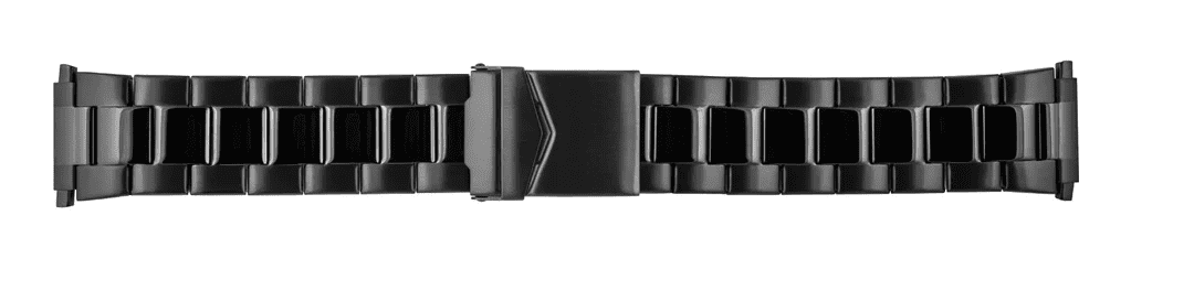 Hadley Roma Black PVD Wide Metal Link Watch Bracelet.  Fits 22-26mm ends Satin Side, Shiny Center. Locking Diver Buckle