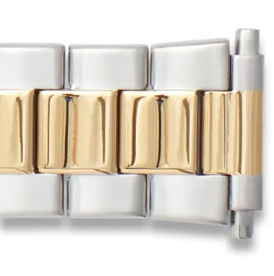 Hadley Roma Men’s Wide Link Two Tone Watch Bracelet, Fits 22-26mm ends. Satin rails, with shiny center.