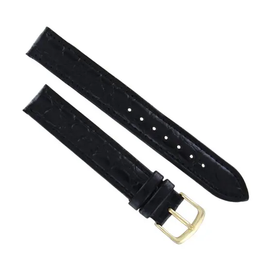 20mm Black Stitched Croco Grain Leather Watch Strap