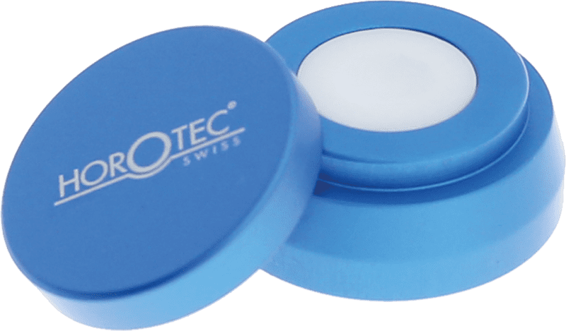 Oil cup in blue anodized aluminum. Interior cup is made of white ceramic. Outer dimensions: 13.90 x 25.0mm. Inner cup dimensions: 3.0 x 6.0mm