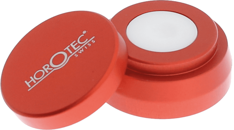Oil cup in red anodized aluminum. Interior cup is made of white ceramic. Outer dimensions: 13.90 x 25.0mm. Inner cup dimensions: 3.0 x 6.0mm