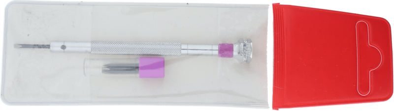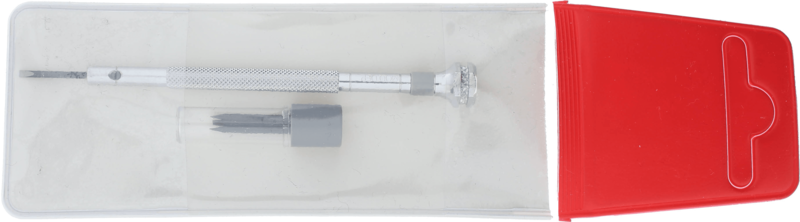 Chromed Brass Classic Screwdrivers, standard blades. 3 extra blades and pouch.