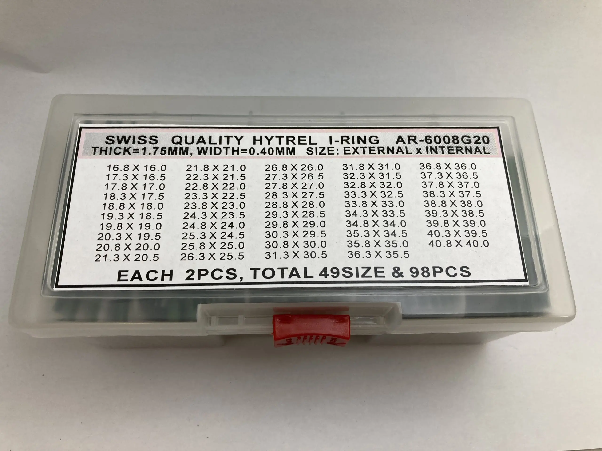 I Ring Gasket Assortment for 2.0mm Crystals, Half and whole sizes 16.0-40.0. 2 pieces each, 49 sizes, 98 pieces total. Refills available separately.