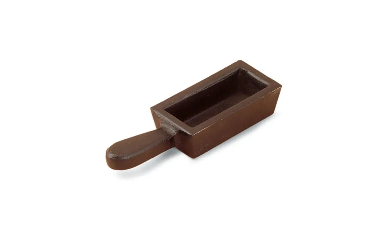 Forms ingots or bullion of various sizes. Cast iron. Depth: 35 mm, Length: 90 mm, Width: 35 mm, Capacity: 78 g.