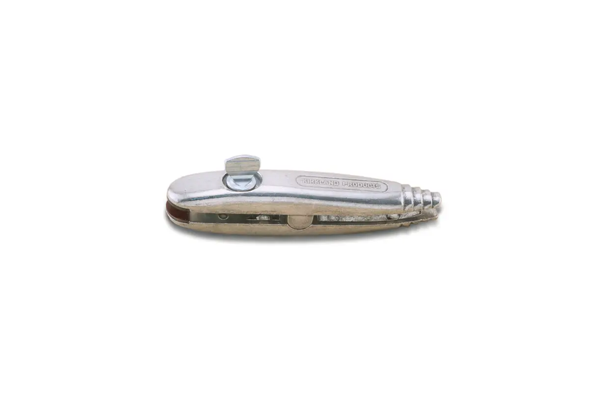 One end clamps from the outside for polishing and stone setting, while the other end holds from the inside for total circumference polishing and buffing. Metal construction conducts heat away from ring. Holds ring sizes 1 through 13.
