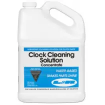 This clock cleaning concentrate is the most effective solution for ultrasonic, mechanical, or manual cleaning of clock parts and movements. It is a safe, water-based, ammoniated product. When diluted, it is recommended that you use one part concentrate to seven parts water.