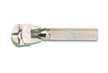 With hollow handle and grooved corrugated jaws that open and close by turning handle. Design allows you to hold long wire pieces not accessible with regular hand vise. Width of jaws 1/2″, overall length 4-3/4″.