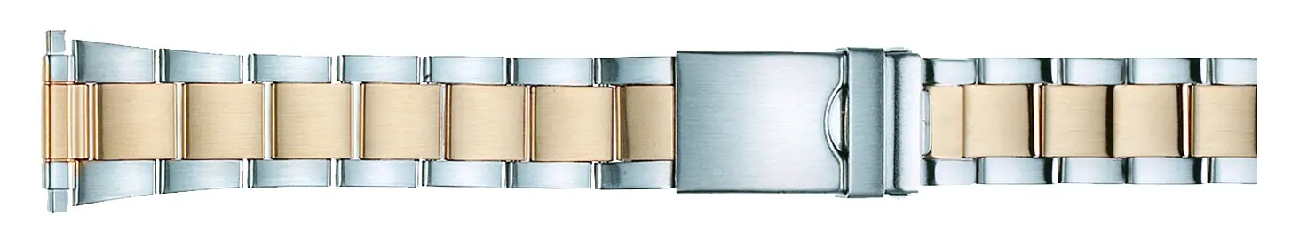 Men’s Sport Two-Tone Non-Expansion Bracelet Replacement Watch Band. Stainless steel non-expansion band; 16-22mm adjustable straight end; 7″ length; tapered; fold-over safety clasp.