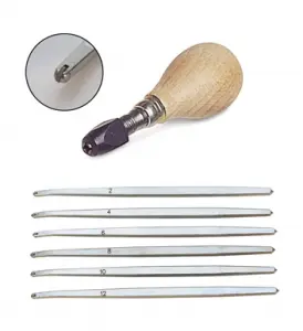 Premium European-made millgrain tools are used for forming decorative edges on settings and bezels. Set of six assorted sizes ranging from 2–12 with premium chuck style handle.