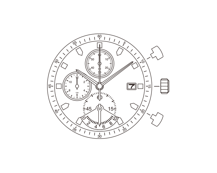Size 13 1/2L4.13mm thickHand Size 70/120/173 Eye Chrono Hand size 26Date @3Battery 399