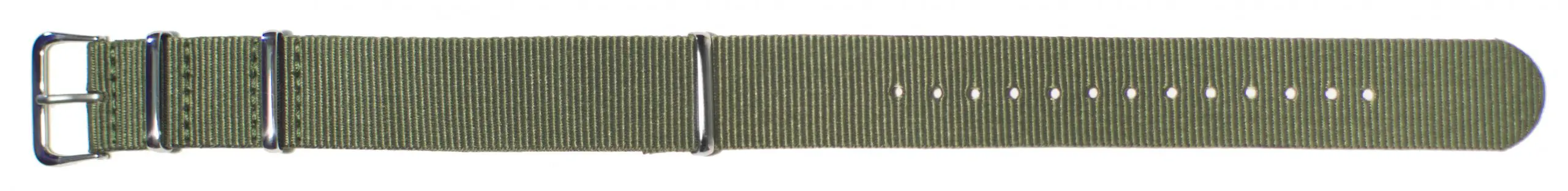 Nato Style Olive Nylon Watch Strap, 20mm. Stainless hardware.