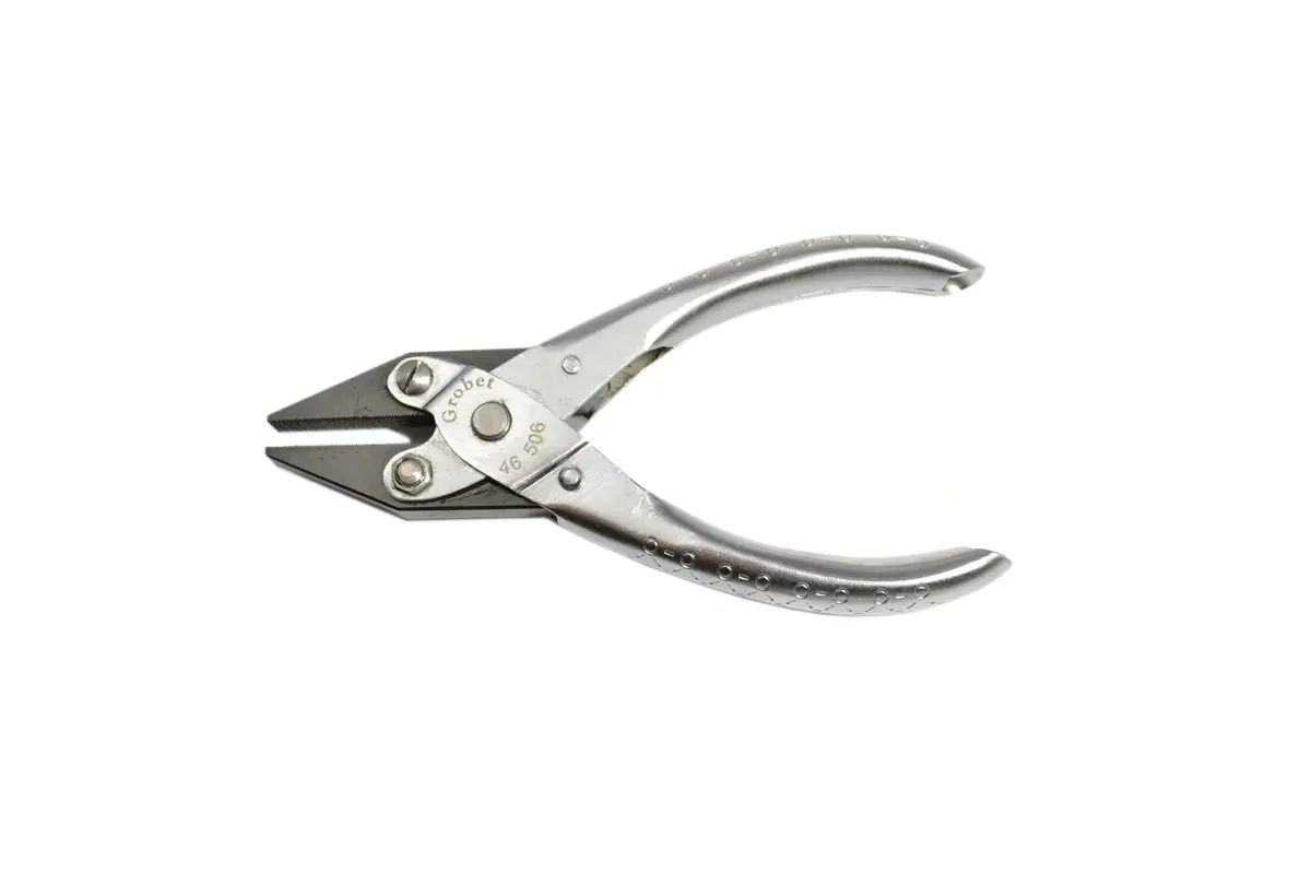 Provides a square vise-like grip. Heavy, flat nose, Serrated, Slot “V”, Overall length 5-1/2″.