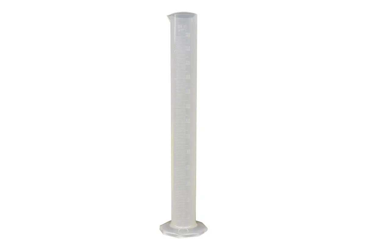 For measuring the correct amount of water to mix with investment and determining the amount of metal to be cast by the displacement method. 250 ml.