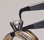 German-made pliers feature a thinner claw to get in behind prongs. The angle and length of the bottom jaw provides precise leverage to minimize damage to stones. The lower jaw is grooved so that it does not slip sideways on the prong. The claw is made to be filed to a fresh point as it wears. Box-joint with PVC grips. A EURO TOOL original. Length 5-1/4 inches (135mm).