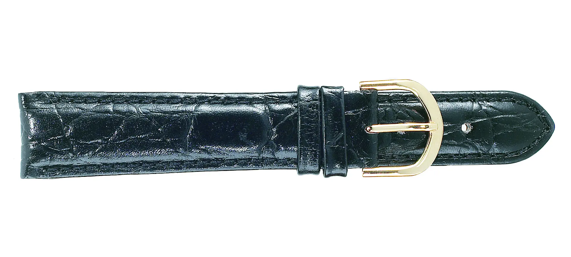 14mm Black Croco Grain Padded Leather Band. With Buckle.