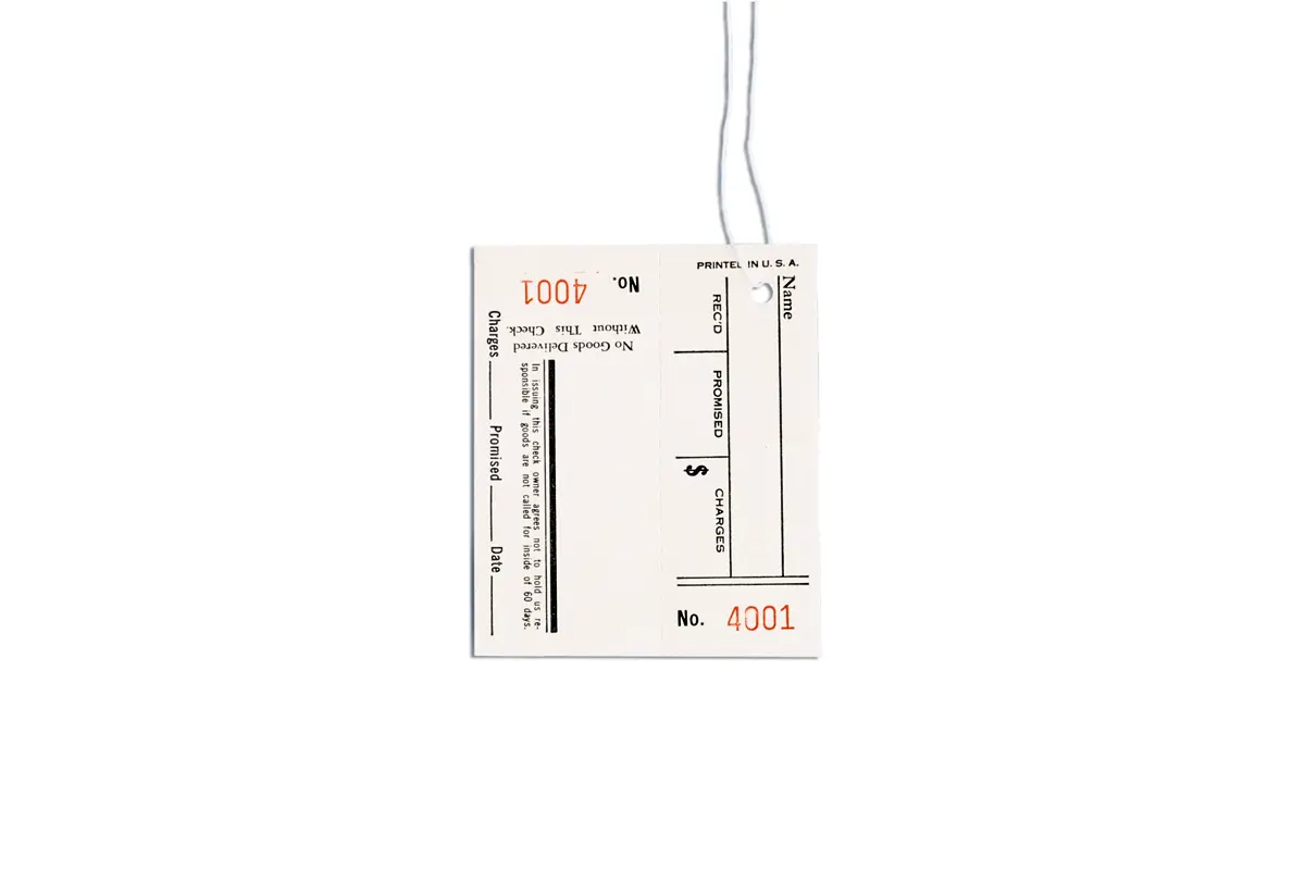 Tear-off claim checks, with room to print the customers name and address. Both parts are numbered clearly. Sold by box of 1000.