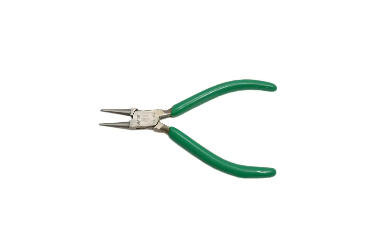 Lightweight stainless steel work pliers have smooth jaws and are completely rust proof. Polished heads prevent marking soft metals. Cushion grip handles. Overall length is 5″.
